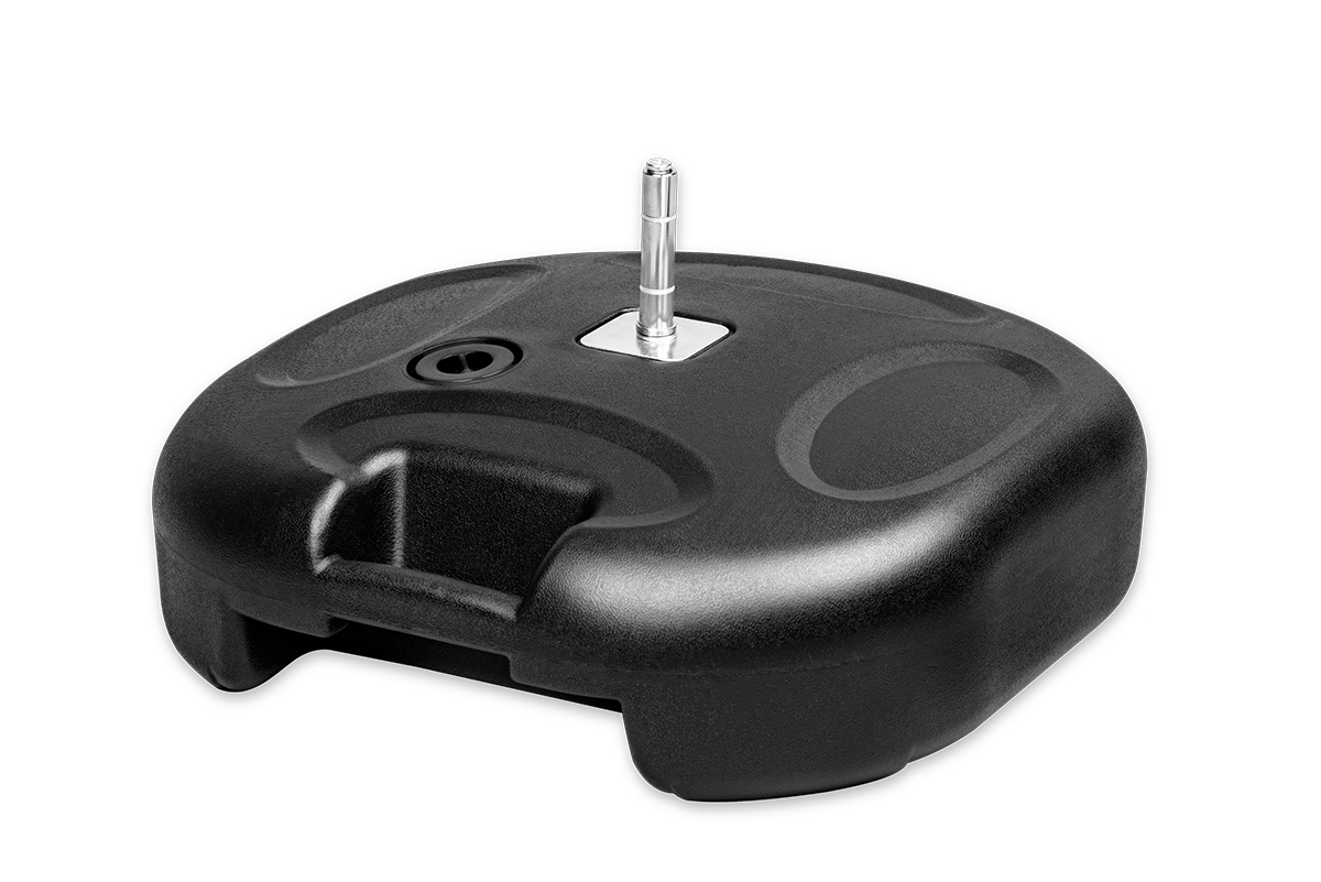Jedna z naszych najchętniej wybieranych podstaw reklamowych, idealna do masztów i flag. Zbiornik wykonany został z grubego, wytrzymałego tworzywa sztucznego, odpornego na uszkodzenia mechaniczne oraz warunki atmosferyczne. Wyposażony w otwór zaciskowy/trzpień/rotator, który zapewnia szybki montaż i stabilne utrzymanie masztu.